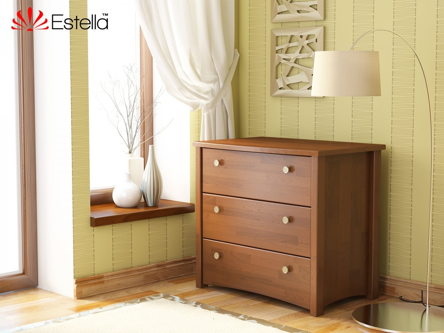 Весь асортимент меблів ТМ «Естелла» пропонується в 8 відтінках, від білого до темного. Для того, щоб отримати необхідний колір, на дерев'яну поверхню наноситься лак. У виробництві використовуються виключно високоякісні сучасні лакофарбові матеріали, які характеризуються високим ступенем екологічності, гіпоаллергічності, нетоксичність. Візуальна складова - не менш важлива, саме тому компанія «Естелла» застосовує дорогу послідовну технологію нанесення лаку, що дозволяє зберегти текстуру натурального дерева.