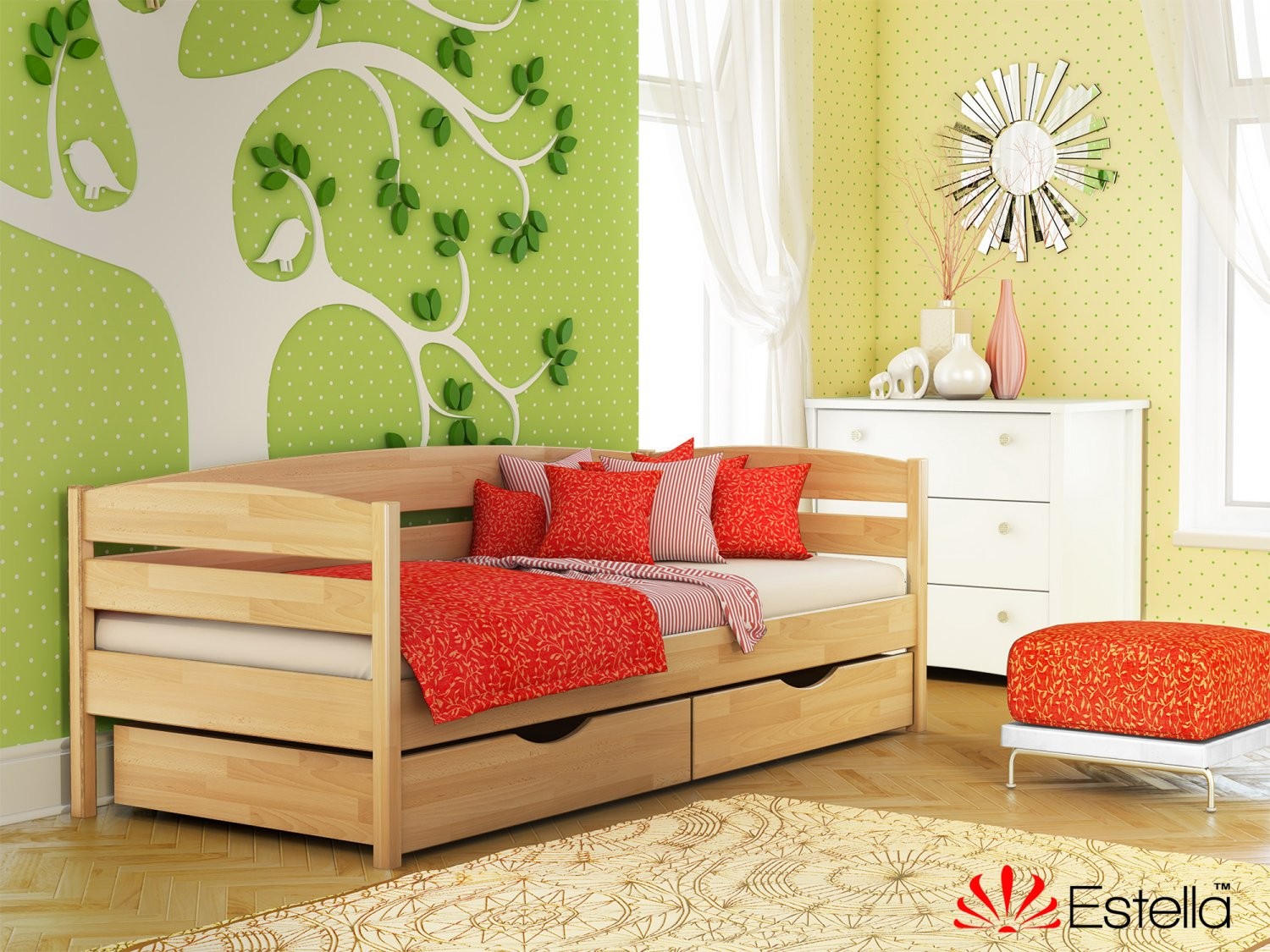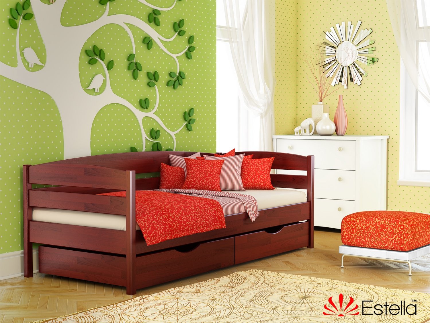Весь асортимент меблів ТМ «Естелла» пропонується в 8 відтінках, від білого до темного. Для того, щоб отримати необхідний колір, на дерев'яну поверхню наноситься лак. У виробництві використовуються виключно високоякісні сучасні лакофарбові матеріали, які характеризуються високим ступенем екологічності, гіпоаллергічності, нетоксичність. Візуальна складова - не менш важлива, саме тому компанія «Естелла» застосовує дорогу послідовну технологію нанесення лаку, що дозволяє зберегти текстуру натурального дерева.
